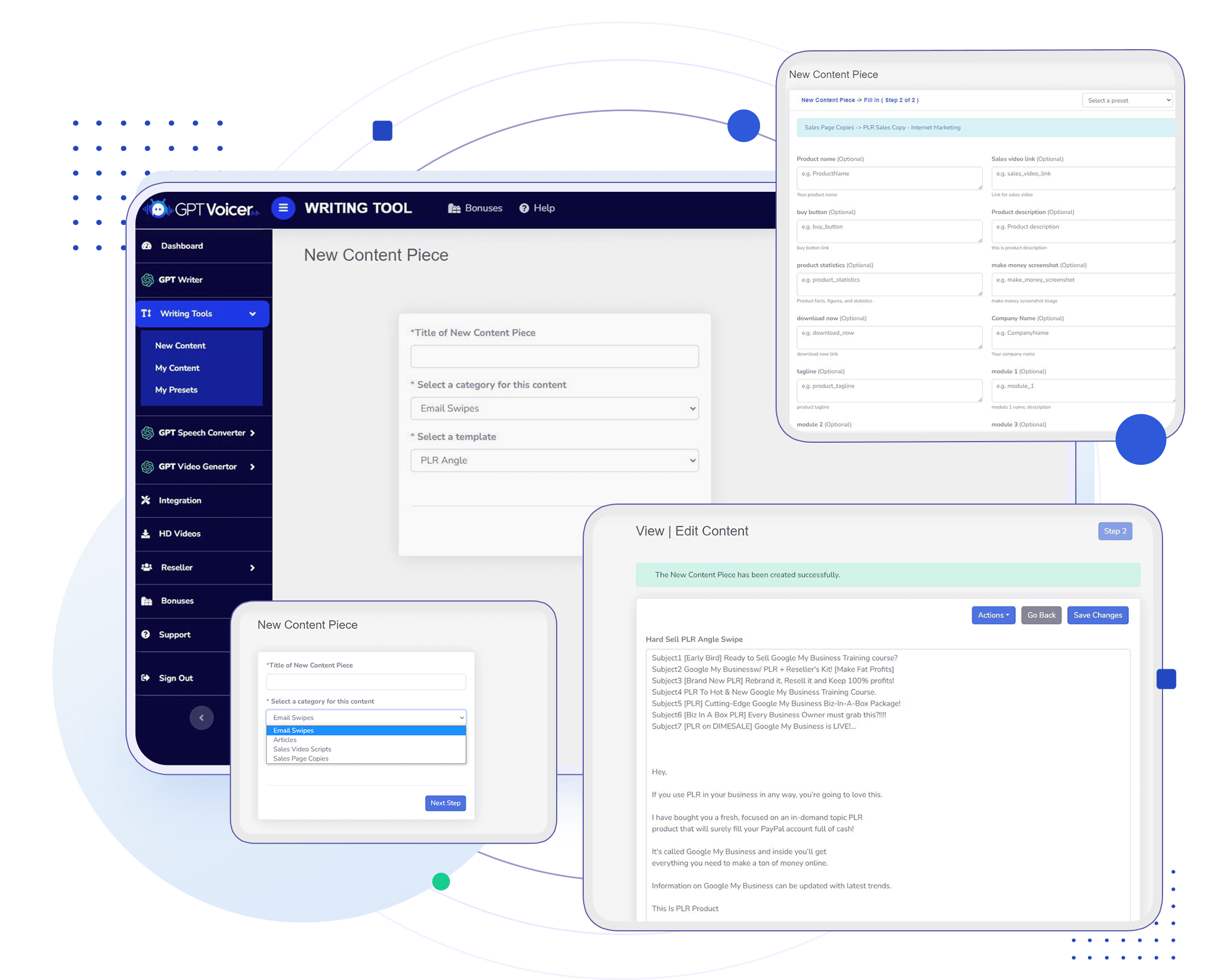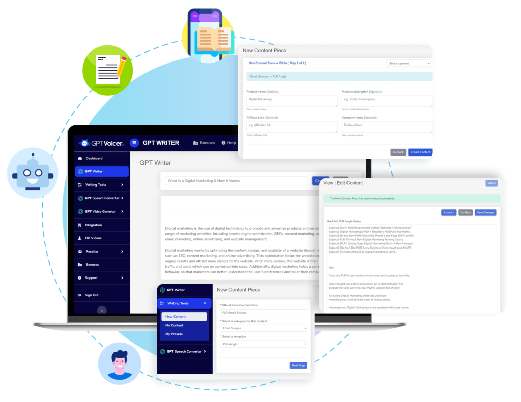 GPT Voicer adalah sebuah aplikasi web base software powerfull yang berfungsi untuk membuat konten marketing seperti:
